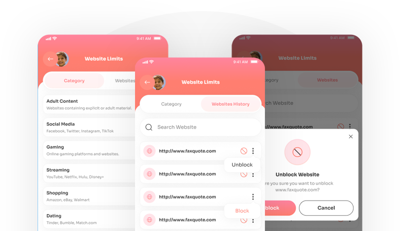 You can block any app or website with ease. Additionally, you can view browsing history and block websites directly from the search history for enhanced control.